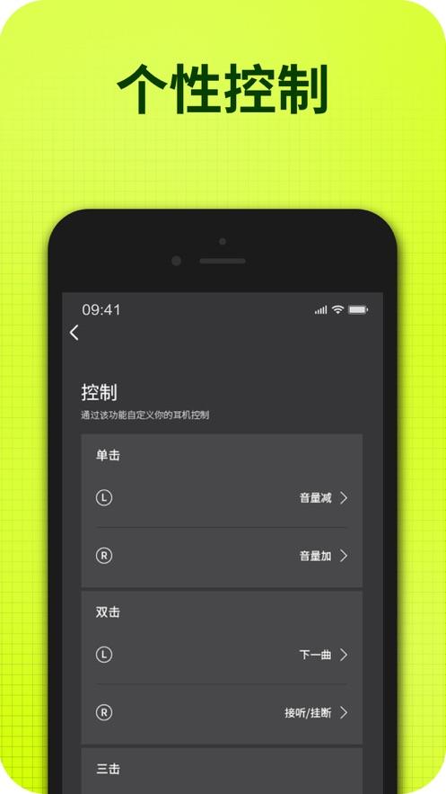 定制操作 - 定制您的耳机控制以匹配您的使用模式。轻松调整音量、播放/暂停音乐、接听/挂断电话以及激活透明模式。
