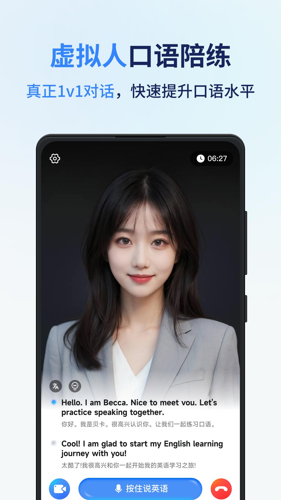 通过利用先进的人工智能技术,模拟真实对话环境,为学习者提供与虚拟角色进行口语交流的机会。发音标准纯正,美式及英式口音兼备。通过与虚拟角色的互动,学习者可以锻炼英语口语表达能力,提高语言应用水平。