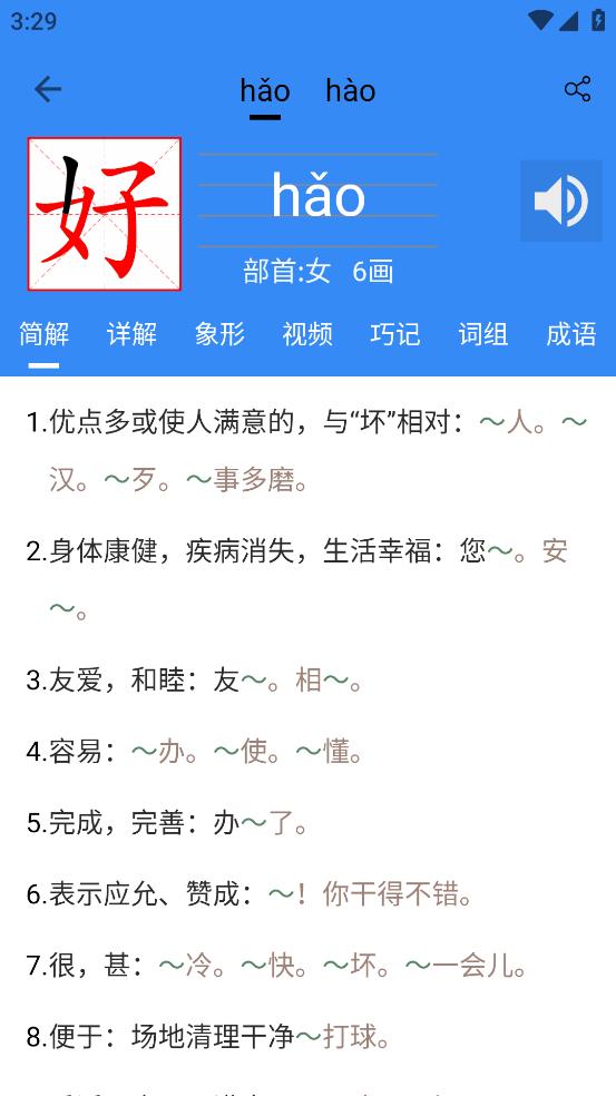 象形字典app是一款手机字典软件,软件拥有词组,例句,笔画演示等等丰富功能,可以帮助用户更好的字词查询,觉得不错的朋友欢迎前来下载使用。