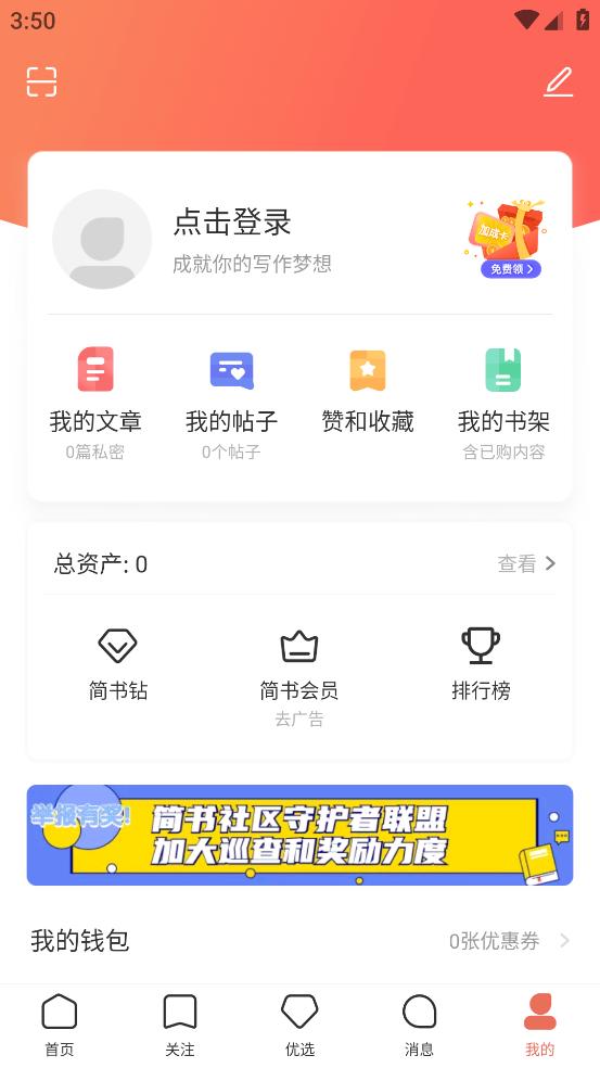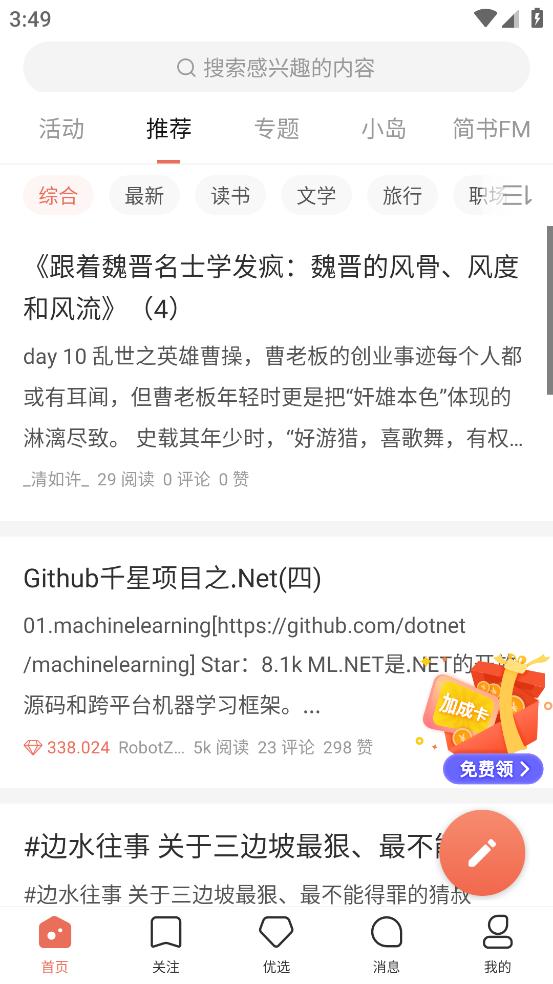 简书是一个优质创作社区,平台拥有首页,关注,优选,消息,我的等等功能板块,可以帮助用户更好的创作及阅读,感兴趣的朋友可以下载看看。