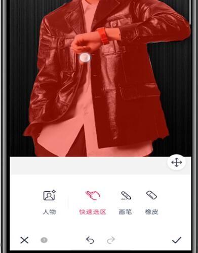 4、手动涂抹自己想要抠出来的部分,细节处可以先涂抹然后用橡皮删掉多余部分,全部涂抹完毕后点击对勾进入下一步骤。