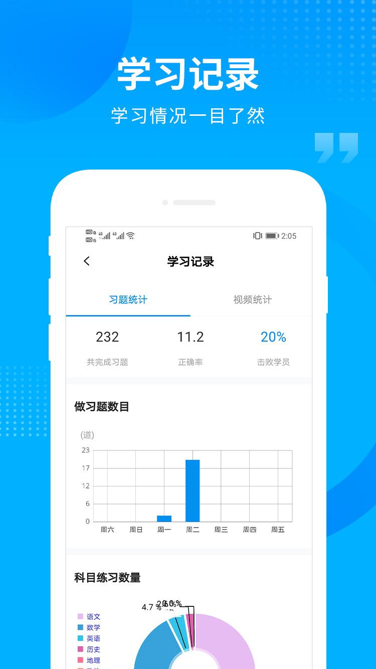 2.自动保存学习记录,使学习情况一目了然,了解更多的学习数据、问题数据和学生交流。
