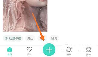 1、点击APP底部菜单栏的+号按钮;