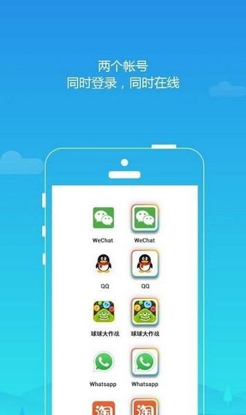 • 在单个设备上,它允许您运行两个相同的应用程序并同时登录两个不同的帐户。