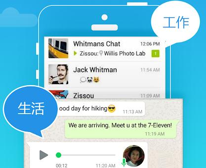 几乎所有应用都支持平行空间中的第二个账户。两个账户的数据不会互相干扰。