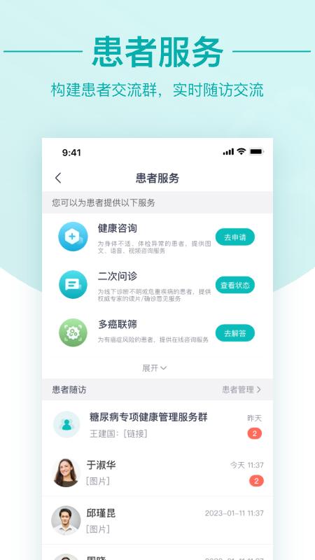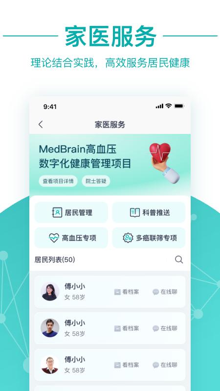 【健康服务】线上家医服务的得力工具,足不出户完成政府所托:指导建设健康档案、精准推送定制科普、多种形式交流随访。做好健康守门人,