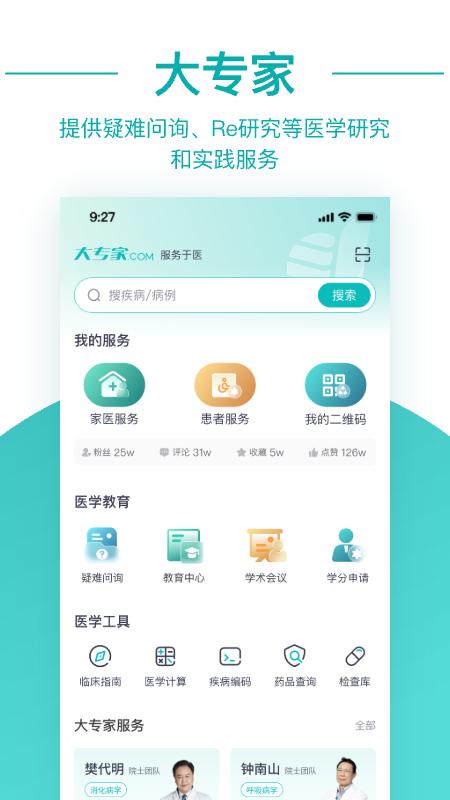 大专家医生版app是专为医疗健康类所打造的一款手机软件,它内置平台里入驻了权威医师,更加便于患者通过该平台进行线上问诊,并且还支持了手机挂号,用户还可以在平台上了解最近的一些医疗信息。