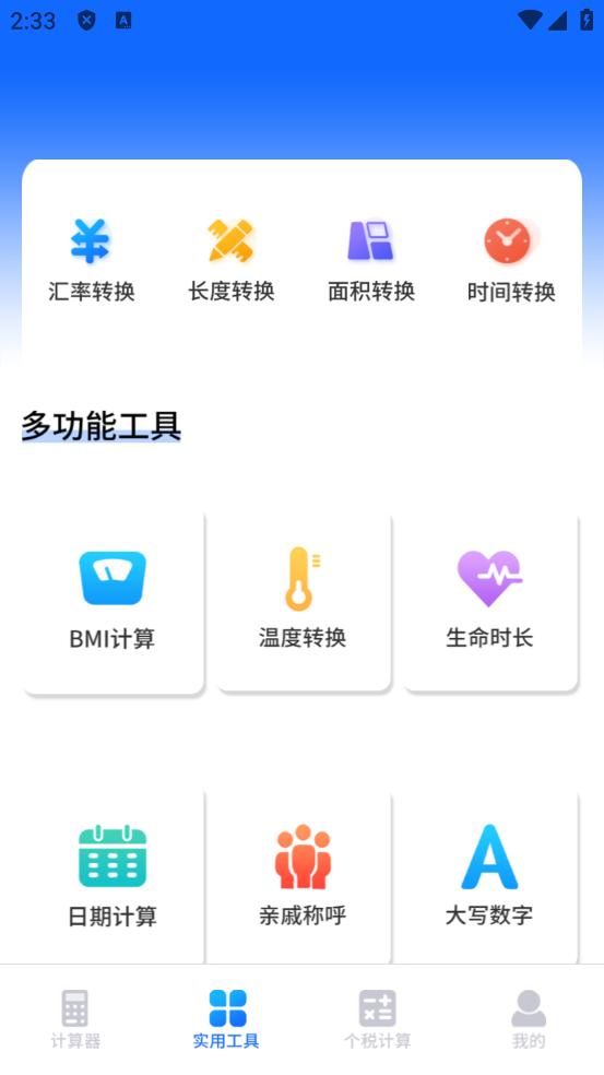 温度转换、日期计算、亲戚称呼、BMI计算等多种计算工具应有尽有