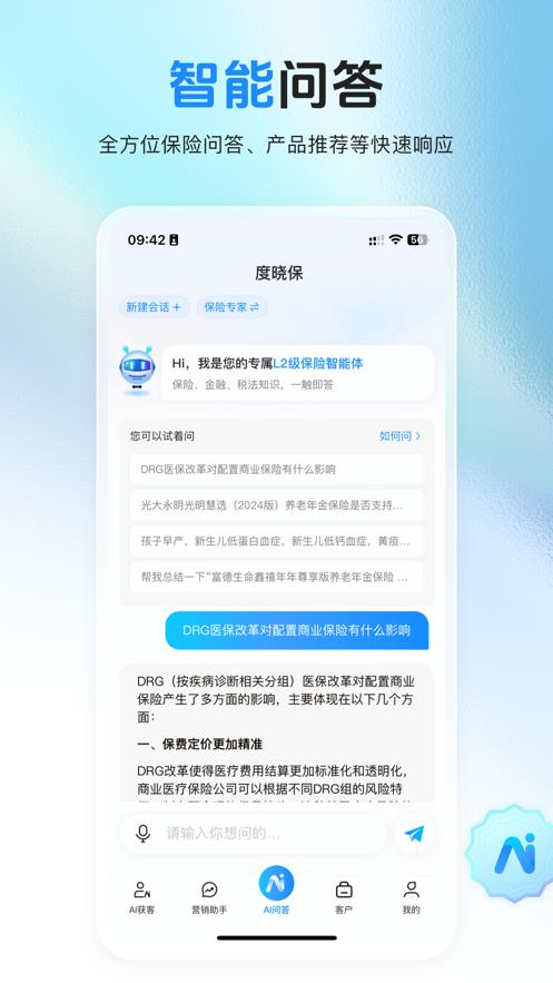 为了拥抱AI技术,度晓保应运而生,构建保险行业大模型,真正让AI能力服务于保险营销人员。