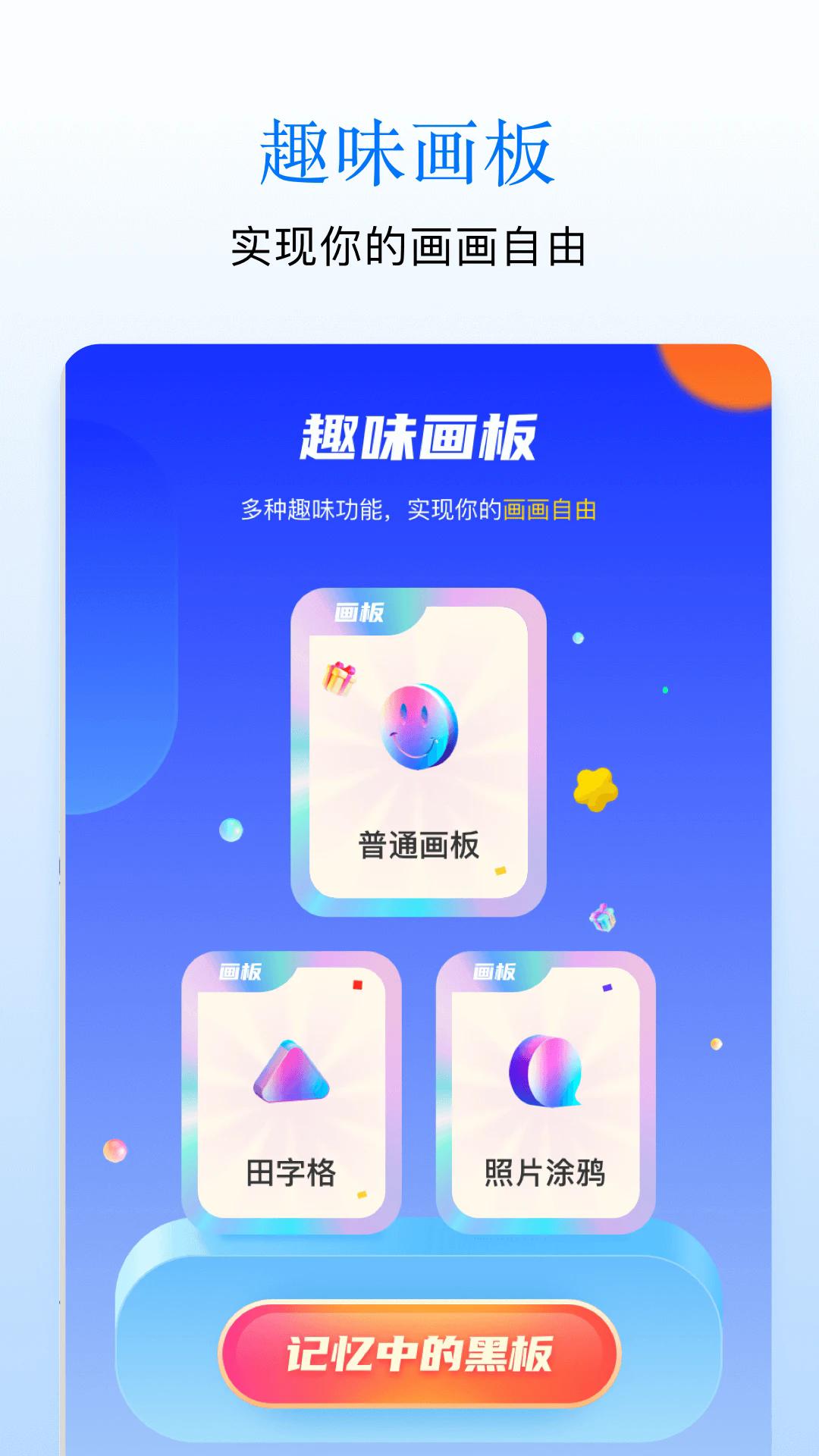 集图片涂鸦、普通画板、田字格、黑板等多种画板主题!