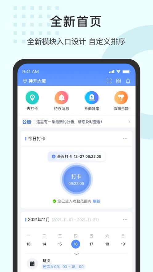 2.员工打卡,支持考勤机、门禁、GPS、蓝牙、Wi-Fi、二维码多种打卡方式;