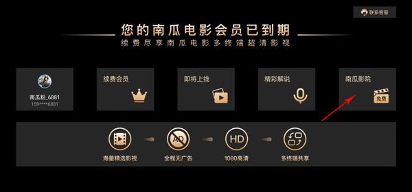 2、进入到软件之后,在续费会员、即将上线、精彩解说、南瓜影视中选择南瓜影视进入;