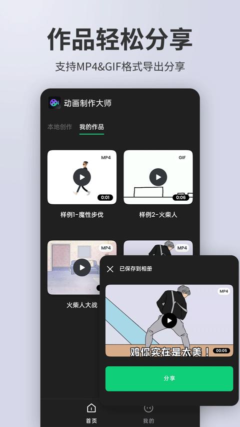 · 分享你的动画到其他地方:如抖音、微信、快手等主流视频平台!