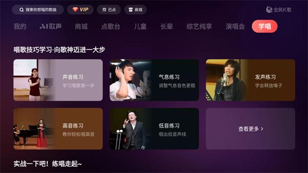 1、全民K歌TV版app的会员与手机版会员不通用,用户可以通过手机电视投屏来将软件映射在电视屏幕上使用,效果与TV版相近。