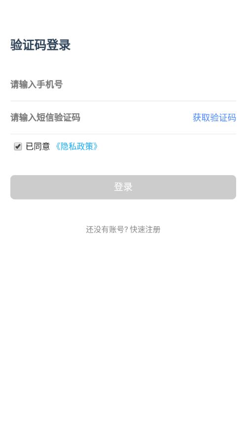 APP使用验证码方式登录,输入手机号点击获取验证码,大概5秒钟左右就会收到验证,输入验证点击登录。