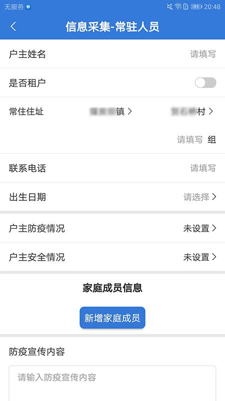 基层人员进行收集常驻人员的基本信息、防疫信息和安全信息;