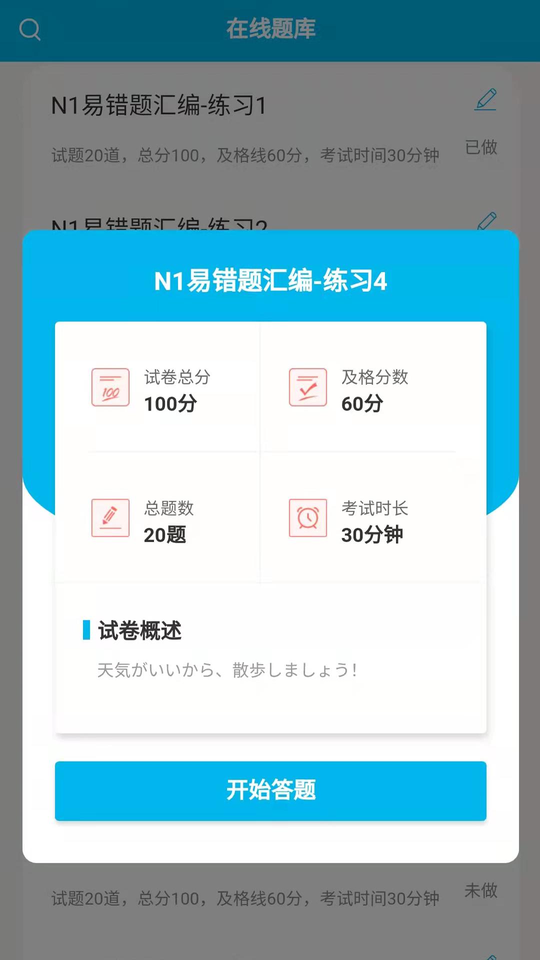 JLPT单词模拟:N1 900题、N2 720题刷题冲刺
