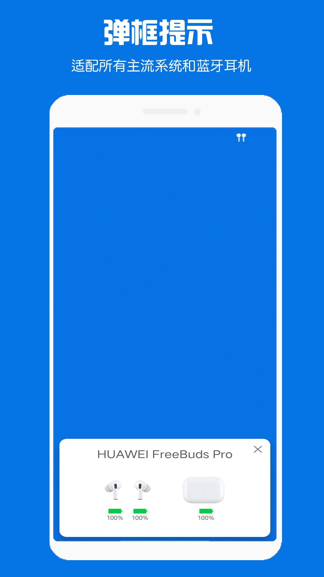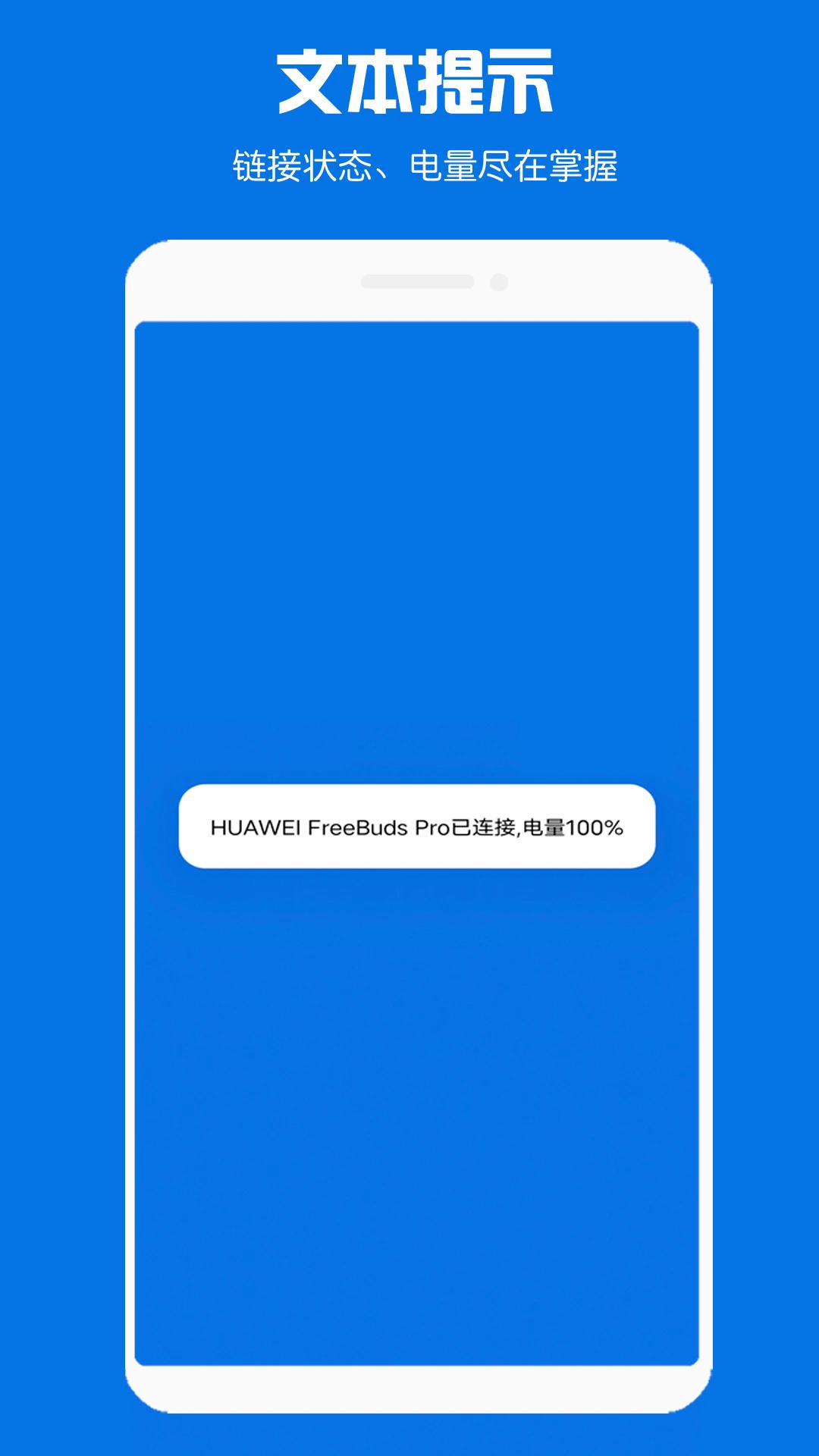 可通过弹框、toast提示、通知栏提示等方式提示蓝牙耳机的链接状态和电量变动情况,及时准确,方便快捷。