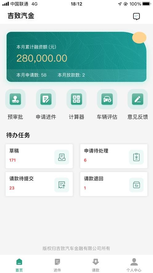 吉致行app是吉致汽车金融移动进件软件,软件拥有首页,进件,请款,个人中心等等功能服务,可以给予用户更智慧高效的金融服务支持,需要的朋友欢迎前来下载使用。