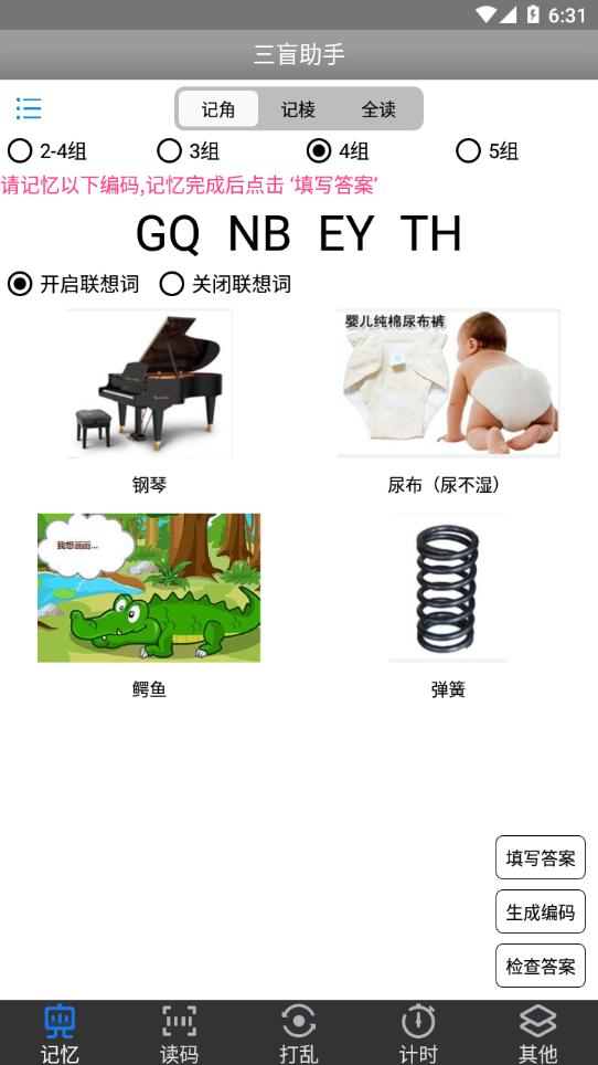 先记忆随机生成的角块编码,待记忆完成之后,点击“填写答案这时候会出现一个弹框,需要你计算三道小数学题,待数学题答案正确之后,弹框消失,然后在屏幕下方输入之前记忆的角块编码(可以无视大小写,小写输入会自动转换成大写,不用来回切换大小写,不用输入空格),