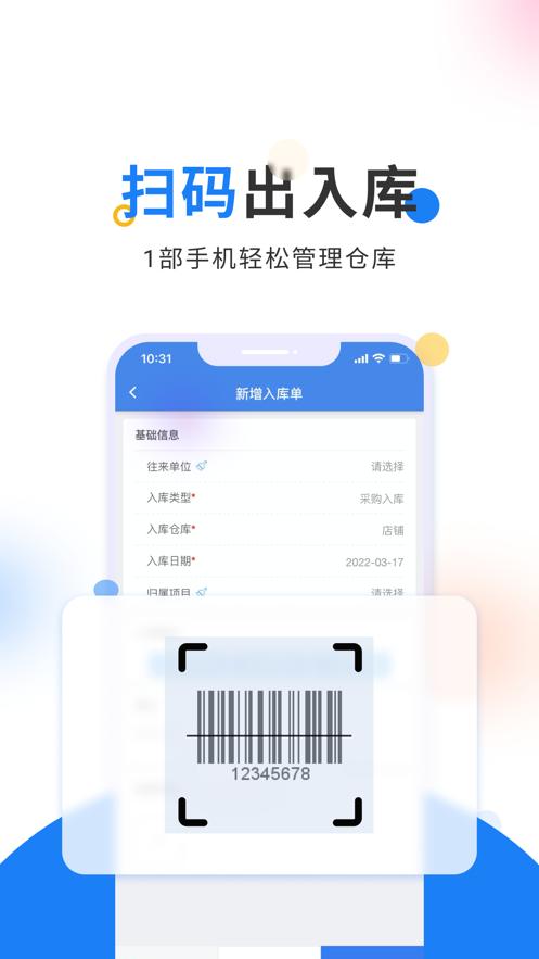 3、 手机盘库:扫一扫随手完成盘点、采购、销售和库存查询,秒级操作,效率提升数倍;