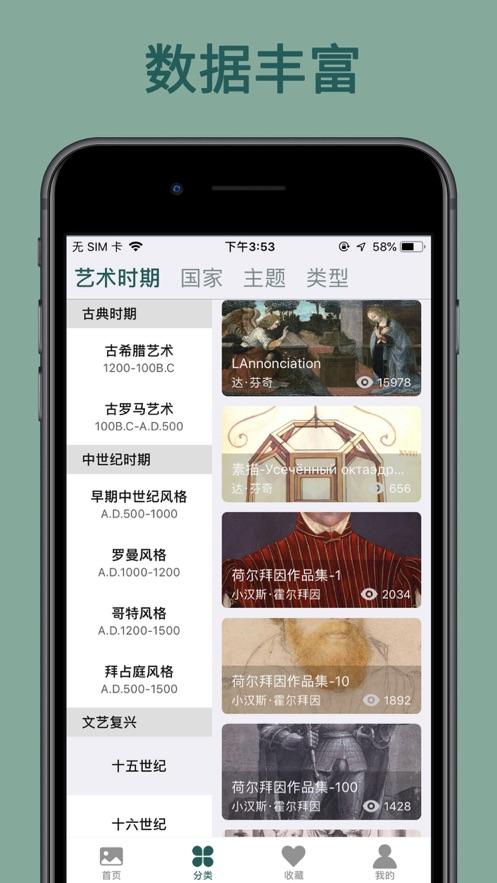 我们收集了古今中外的海量艺术品图像资料,清晰无暇,色彩准确,而且对作品按艺术时期、国家、主题和类型做了清晰的分类。