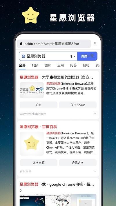 星愿浏览器手机版是一款针对大学生打造的浏览器搜索工具,界面简洁,纯净无广告,操作十分简单,深受广大用户的喜爱,感兴趣的朋友可以来下载体验。