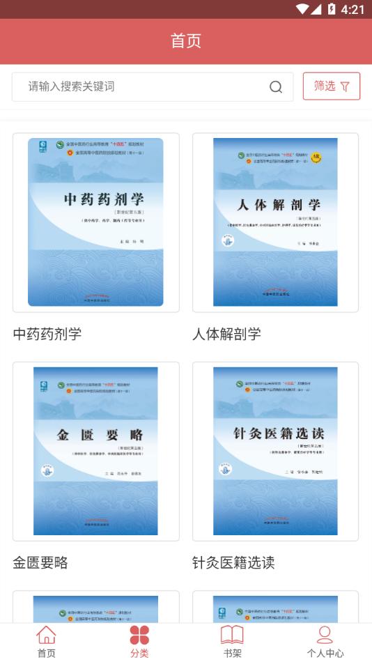 以全国中医药行业“十三五”规划教材为主体,兼容创新教材、校本教材等,提供电子教材,并内置多种形式的课件资源。