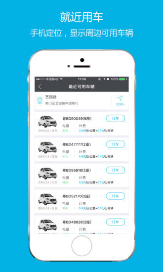 一键轻松找车,点击一键用车即可找到最近车辆;