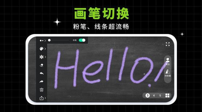 1,模拟黑板效果,粉笔字体,可以选择粉笔或者线条模式来绘画;