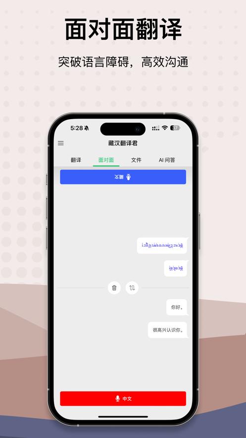 支持实时语音识别和翻译,让您在与藏汉朋友交流时无需借助任何设备,轻松实现面对面沟通。同时,我们还提供文字输入翻译功能,满足您在不同场景下的翻译需求。
