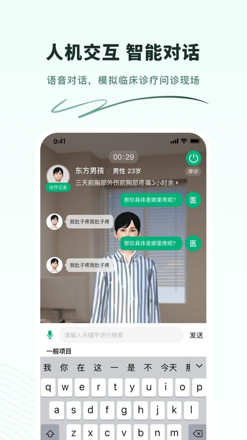 在临床思维训练中,我们使用ai语音问诊,模拟真实3D场景,能够多种角度多种器械对虚拟病人进行体格检查。提供最全的辅检处置数据,帮助虚拟病人进行病情诊断,从而达成临床思维训练。