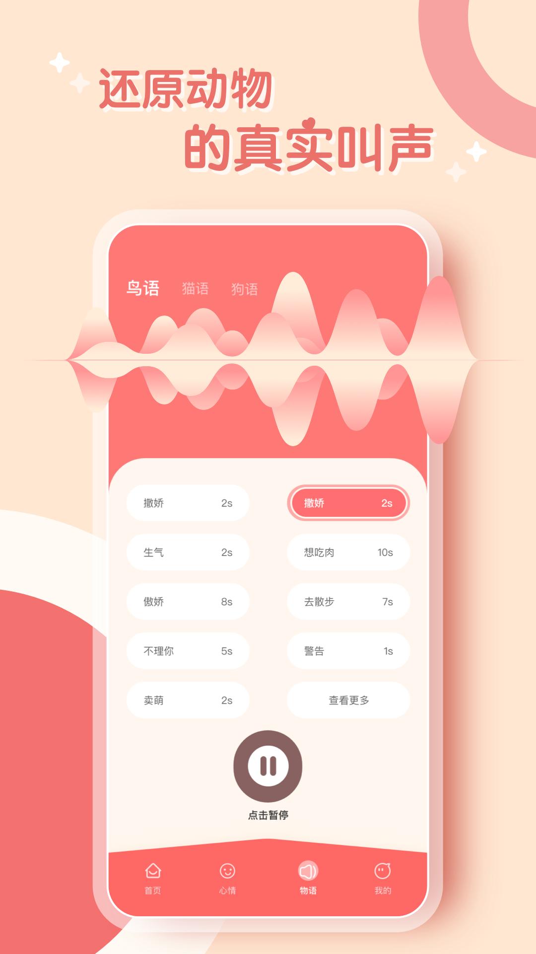 通过动物翻译器,帮助人与动物交流,更好了解动物的心情,让彼此间的情感更亲近,从而更好的相处。