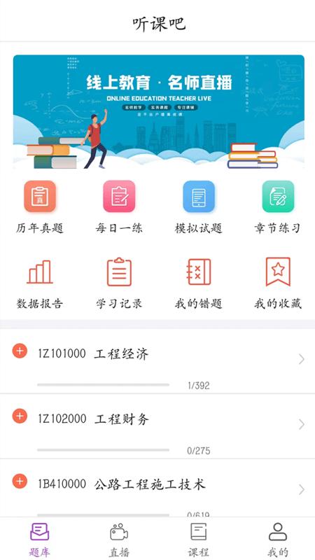 听课吧app是一款教育学习类软件,它内置含有海量的课程资源和教学视频还有海量题库让你可以随时随地刷题练习,并且会根据你的错题情况给你出你最薄弱的题目,让你更快的掌握知识点。