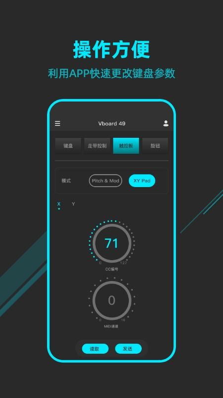 【操作方便】通过“MIDIPLUS 控制中心”APP连接设备,可快速给设备调节参数。