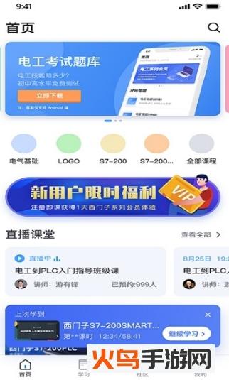 技成PLC课堂app一款学习软件,上面有很多关于电工的学习视频以及与考试相关的信息,您只需要注册就可以获得一个西门子会员体验,所以如果想学习电工的小伙伴就下载这款软件来进阶学习吧!