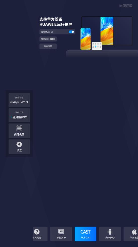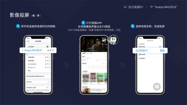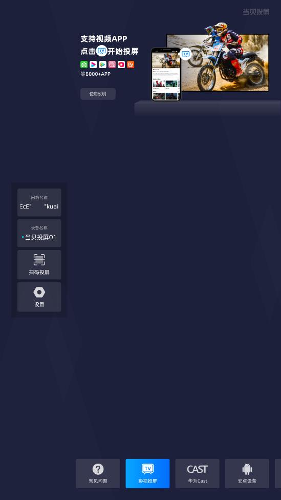 当贝投屏集成了AirPlay、当贝cast、DLNA、华为cast+等多种投屏技术,为移动设备和大屏电视提供投屏服务,目前已支持爱奇艺、优酷、腾讯等数十款主流视频软件,也支持苹果、安卓、华为等不同的设备型号,打造多屏互动的完美影音体验。