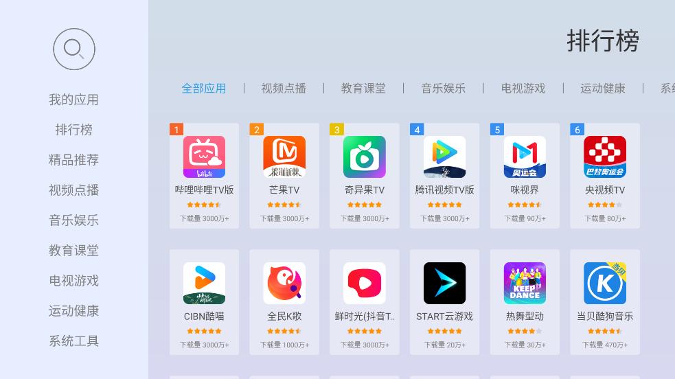 当贝市场极速版apk适合低配置的智能电视使用,该版本力求界面简洁,交互逻辑清晰,涵盖了视频点播、音乐娱乐、教育课堂、电视游戏、运动健康和系统工具六大分类,特别是一些老电视,下载安装当贝市场极速版app,将会获得更加稳定流畅的电视应用市场操作体验。