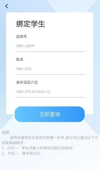 首次登录时,需要使用启鸣号绑定自己的孩子,启鸣号联系班主任获取即可。