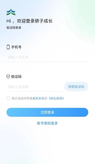 【骄子成长】提供“验证码登录”和“账号密码登录”两种登录方式。