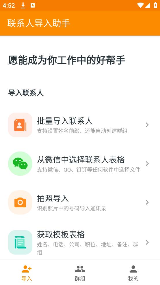 联系人导入助手APP使用一款可以将excel表中的通讯录导入到手机通讯里里的通讯导入软件,这款软件对于手机电话的导入是很方便的,不管是换手机,还是对于大量的电话要导入,这款软件绝对是用户的第一选择,软件下载后就可以使用,操作也很方便,快来下载吧!