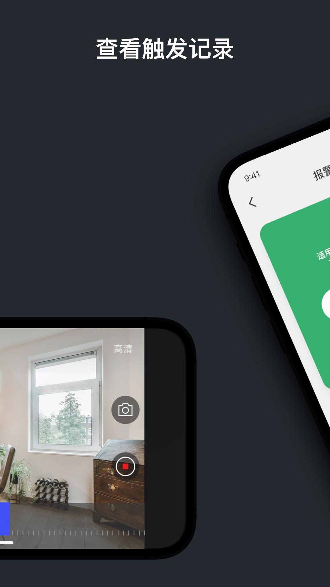 智能检测动态,当检测到异常人形、声音的时候即可自动发送报警通知