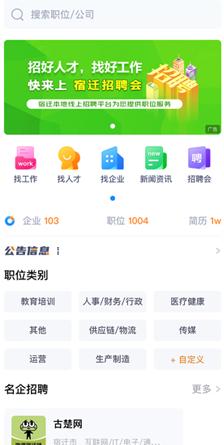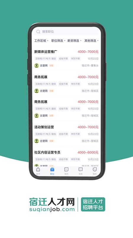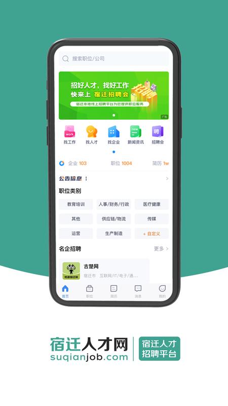 宿迁人才网app是一款由宿迁乐视传媒有限公司开发的求职招聘软件,软件内拥有丰富的优质岗位和优秀人才简历,用户可以通过本软件线上寻找合适工作,企业用户也可以从中寻找优秀人才。