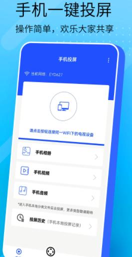 万能手机投屏让您轻松投影手机网络视频及本地视频、音乐和图片到电视机的大屏幕上,画质清晰,播放稳定无延迟,便捷实用的投屏软件,自动搜索可投影的电视设备,投屏TV。
