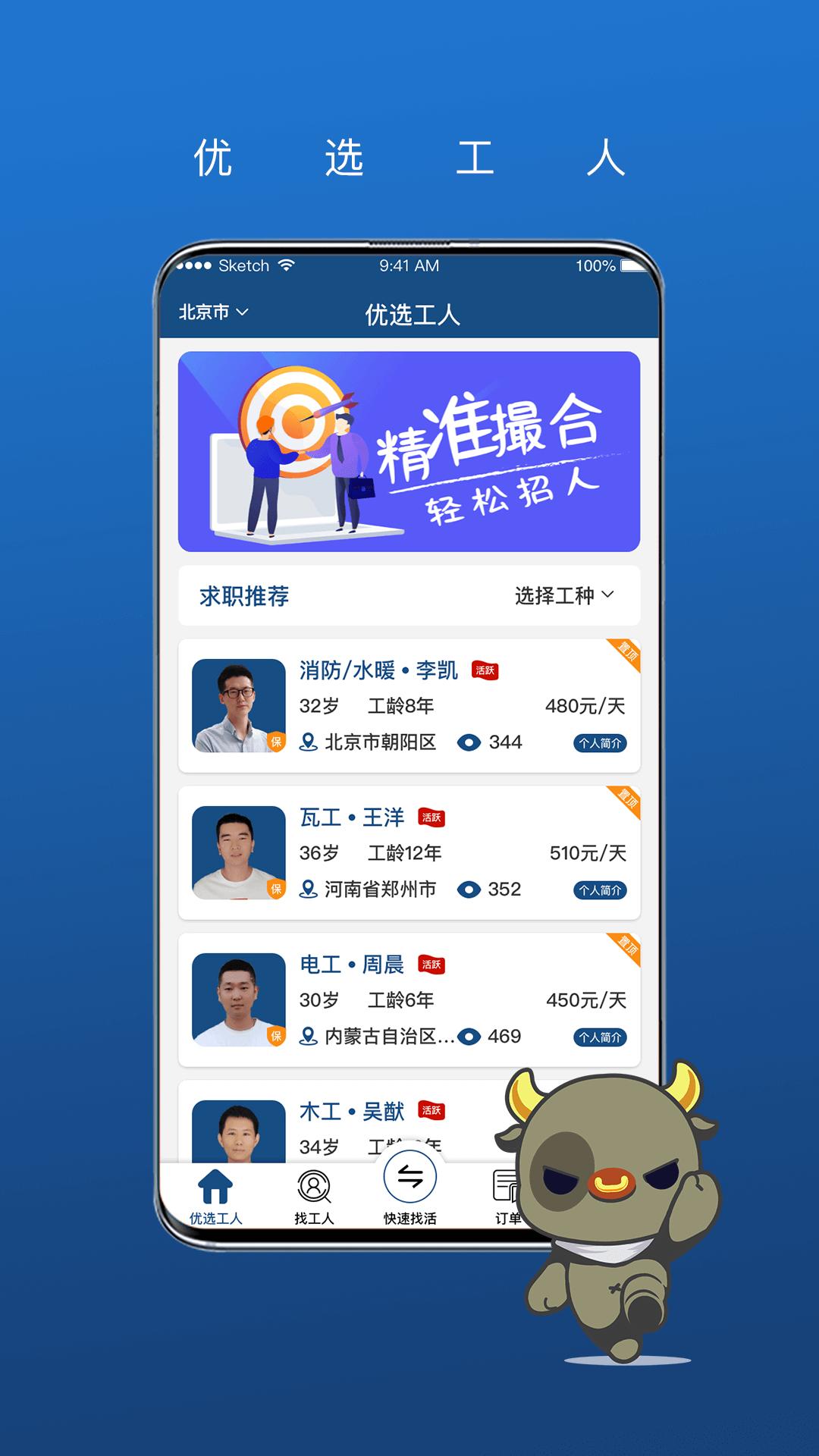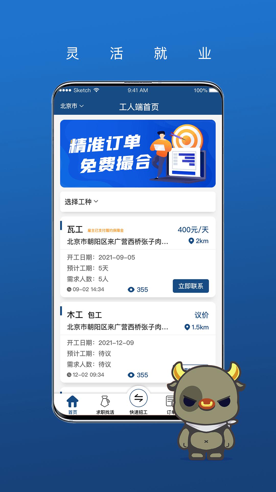 1、各种各样类型的建筑工作全都有,可满足工人们的找活需求;