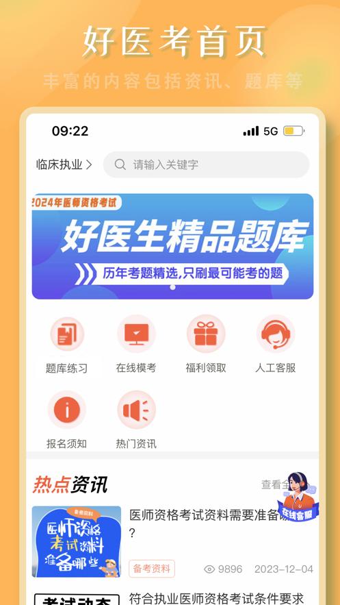 好医考app是一款医学考试全方位服务平台,平台拥有资讯,题库,在线模考等等功能服务,可以帮助医学考试考生更好的学习备考过考,欢迎前来下载使用。