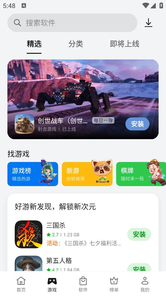 分类大全:进入软件、游戏、专题分类,帮你快速找到喜欢的应用哦。