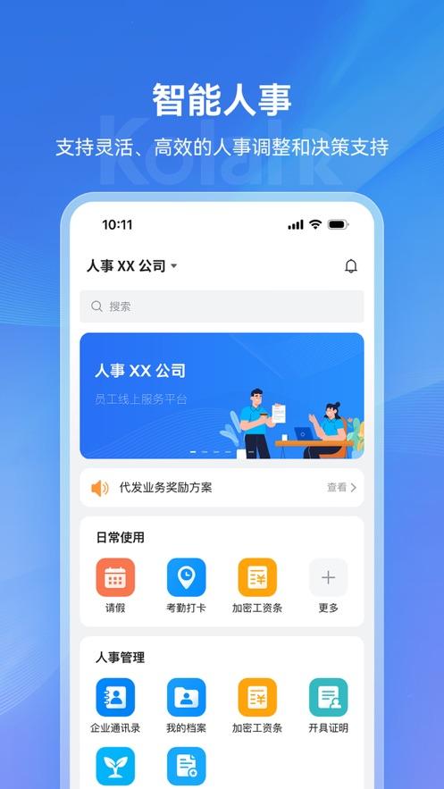 可拉熊员工帮app是一款人力资源服务数字化SAAS平台,平台拥有人事管理,假勤管理,薪酬管理,OA审批等等丰富功能,可以帮助企业更好的人力资源管理。