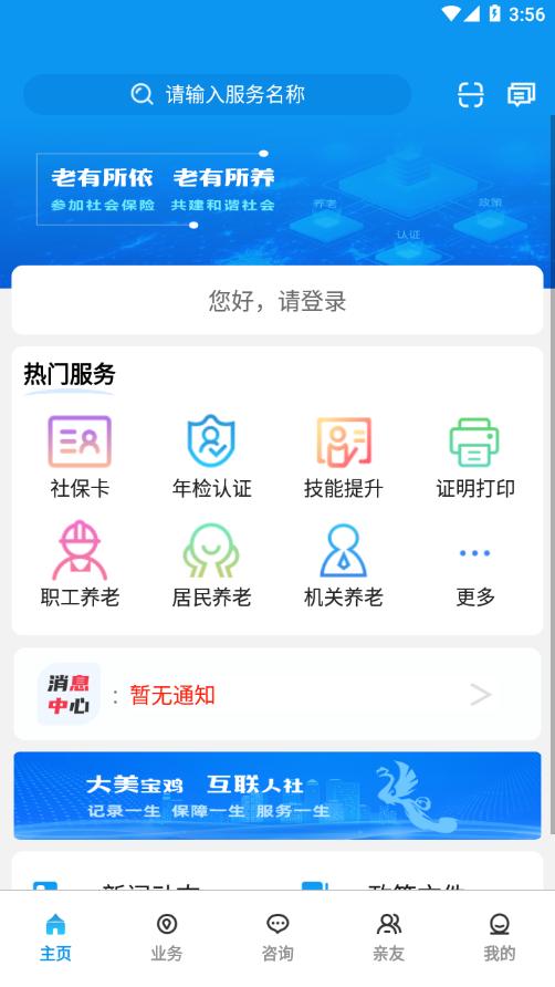 宝鸡人社app下载是宝鸡市人力资源和社会保障局官方倾情推出,软件拥有主页,业务,咨询,亲友,我的等等功能板块,可以给予用户更棒的人社服务体验。