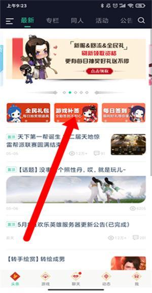 2、进入首页,点击游戏补签。